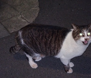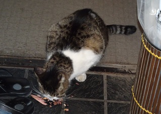 24.鼻キズ子のニケちゃんに皿は必要ありません。焼き鰹をくわえてすぐ移動します。