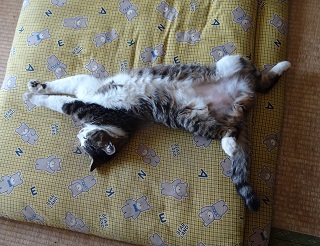 17.いつまでそんな姿で寝ているんだ。白茶のドラ猫の雄から嫌われるぞ。