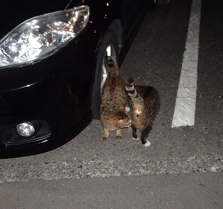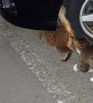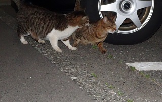 15.今夜は小柄な杏子(あんず)ちゃんに試練が訪れました。鼻キズ子のニケちゃんに襲われたのです。しかし杏子(あんず)ちゃんは飼い猫です。自宅のプチ豪邸まで逃げかえれば良いのです。ドンナ(貴族の娘・貴婦人)杏奈ちゃんの様に人間の男性に追われパニックを起こし国道に飛び出す事はありません。…今のところは…。