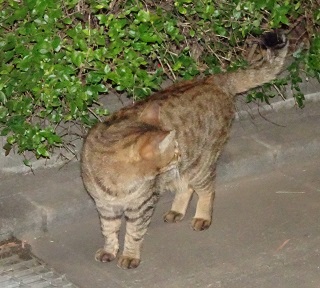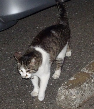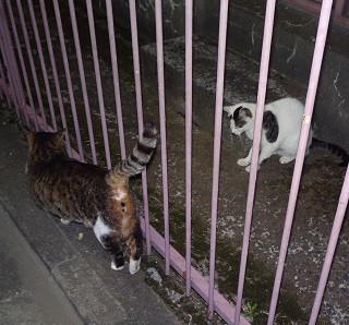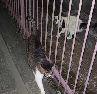 1.今夜の木上登子(きのうえたかこ)ちゃんは低い塀の上にいます。