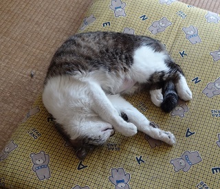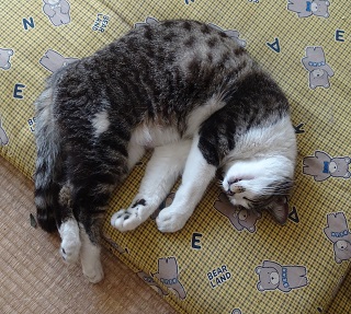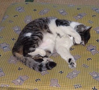 4.時々クーちゃんもこう言う寝相をしていましたがアメリカン・ショートヘア種の雑種の特徴なのでしょうか?。