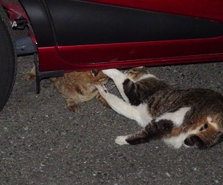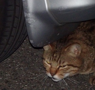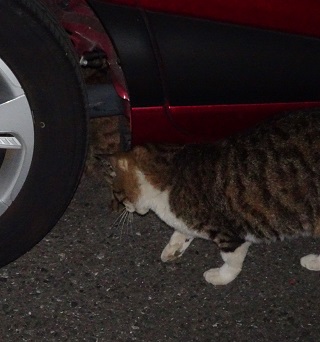 11.自動車の下に杏子(あんず)ちゃんがいました。