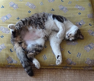 3.相変わらず仰向けで大股開きの鼻キズ子のニケちゃん。