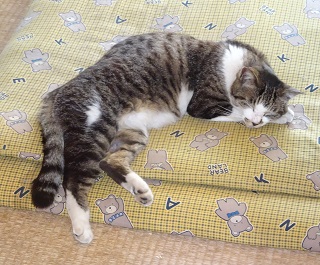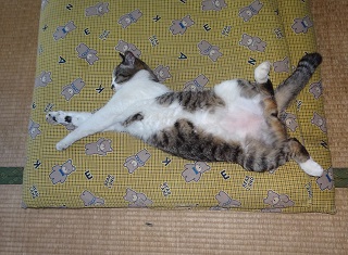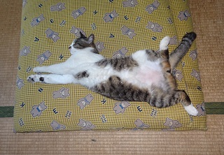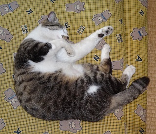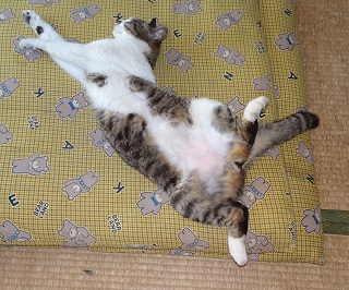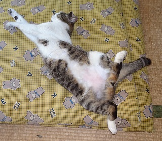 鼻キズ子のニケちゃんがお腹を出して寝ている姿を見てクーちゃんが真夏日(30度以上)・猛暑日(35度以上)になると自転車小屋のコンクリートの上で仰向けになって手足を伸ばして寝ている事を思い出しました。ネコちゃんが仰向けになって寝るのは体温を逃がしていると考える事が出来ないでしょうか?。