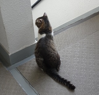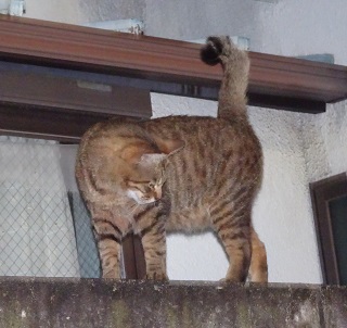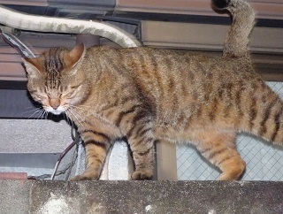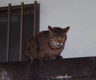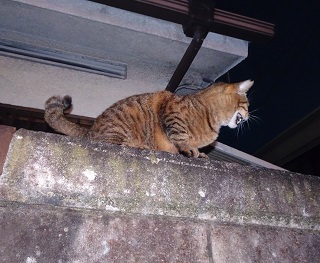 1.普段、杏子(あんず)ちゃんは日本家屋の屋根の上にいてパパを見ると塀の上に降りてきます。