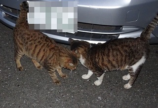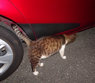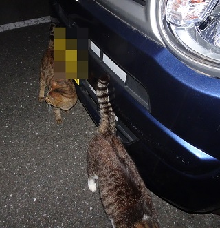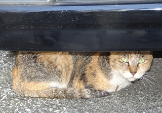 31.杏子(あんず)ちゃんが自動車の下に潜るのは三毛珍獣ちゃんから学習したのかもしれません。九郎ちゃんが死んで未亡人になった三毛珍獣ちゃんは自動車の下に潜る事が多い。