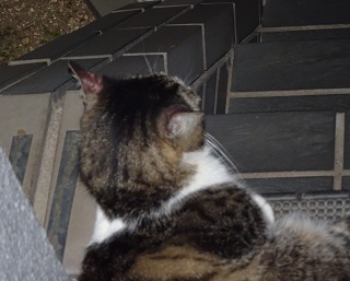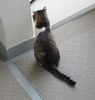 42.その様子を見ていた門番の鼻キズ子のニケちゃん。夏バテでやつれた様にも見えます。