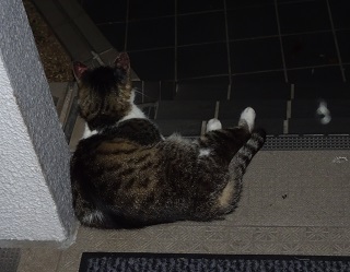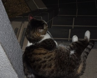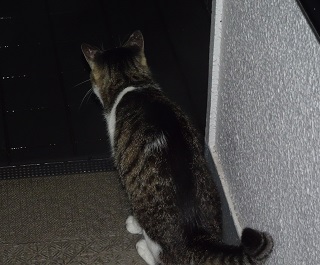 36.そしてエアコンの冷気も気に入らず外に出て夜風にあたっています。