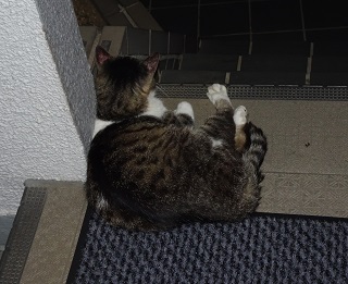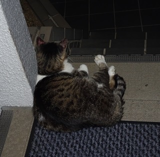 17.夏日(25度)を超えると鼻キズ子のニケちゃんは体毛が抜けだらしなくコンクリートの上に横たわります。