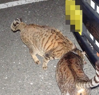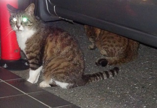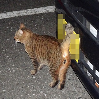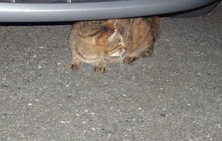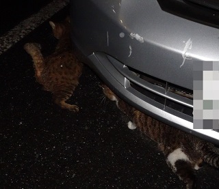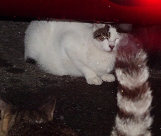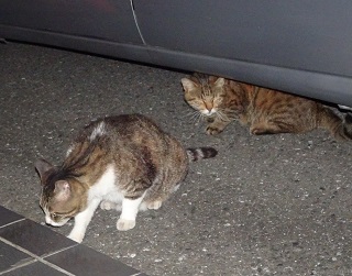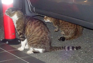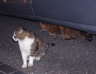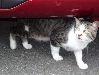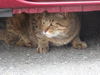 7.杏子(あんず)ちゃんは地域のボス猫の茶子ちゃんがいると自動車の下に潜り出てきません。