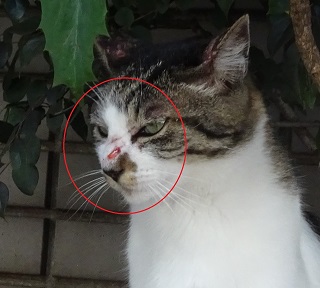 .上記のアップ。自分の前足の爪で掻いたんでしょうね。