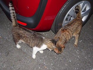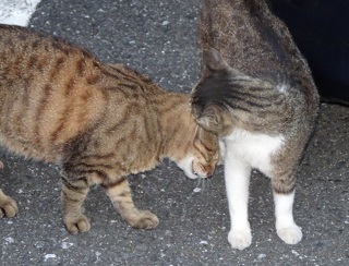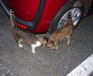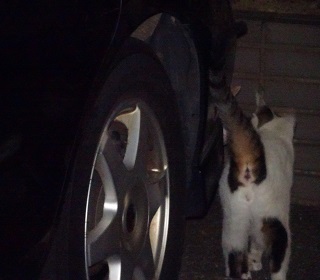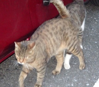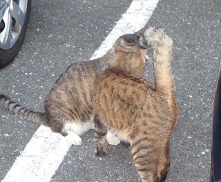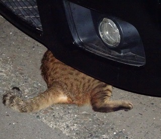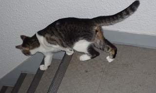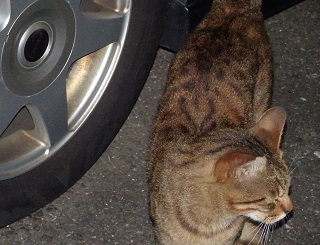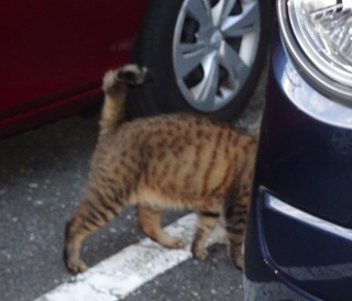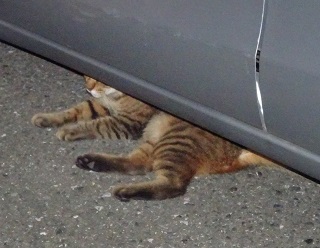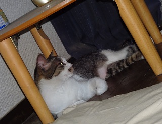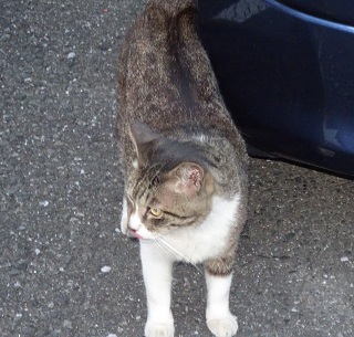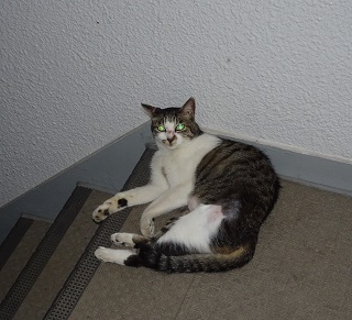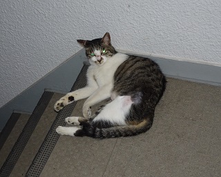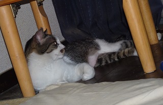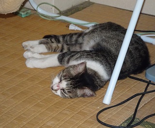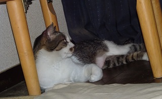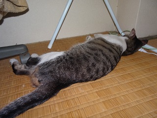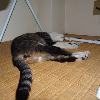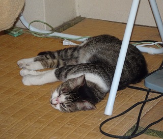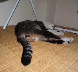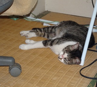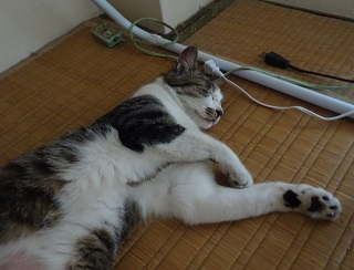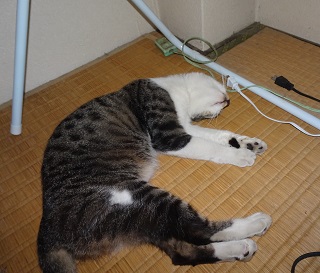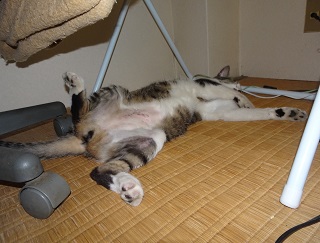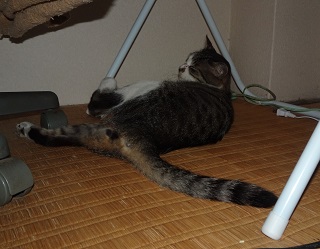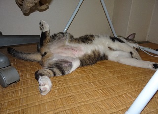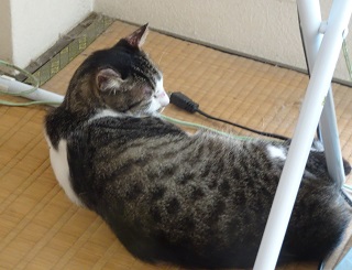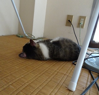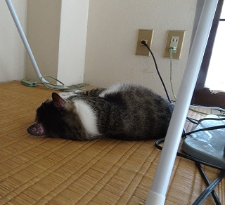 4.エアコンの冷気に当たっている鼻キズ子のニケちゃん。