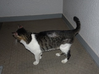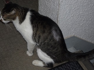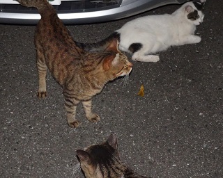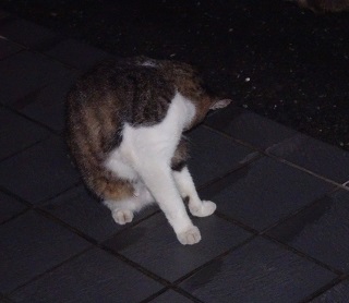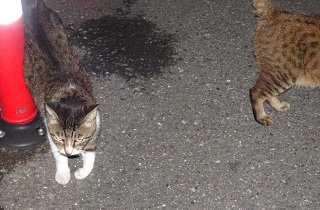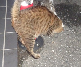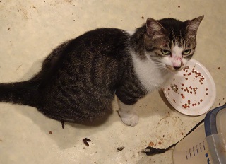 13.今日は鼻キズ子のニケちゃんの給料日です。日払いなので毎日が給料日です。この子は「毛玉」を詰まらせてたびたび汚物を吐きます。「毛玉ケア」が必要なのです。固形・レトルトパック・焼き鰹となんでも食べます。ただ煮干しは好みではない様です。