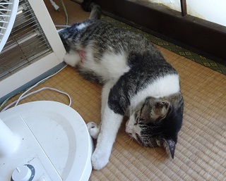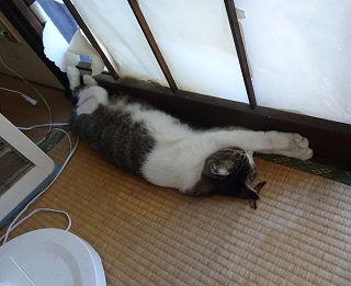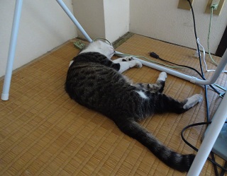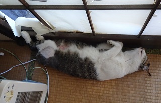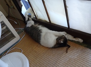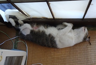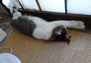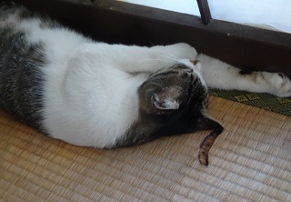 1.畳の部屋で熟睡する鼻キズ子のニケちゃん。