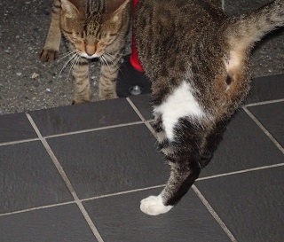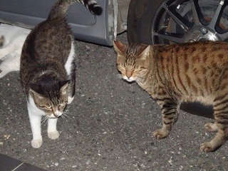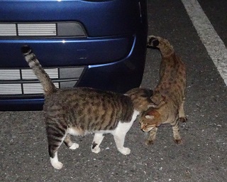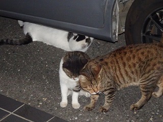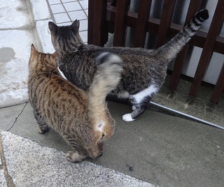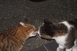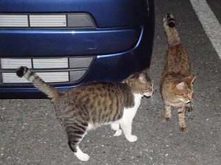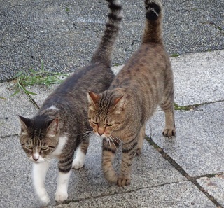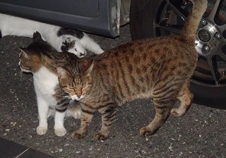 37.ネコちゃんは親子・兄弟等親しい関係のみで肩を並べて歩きます。