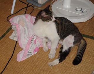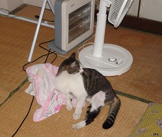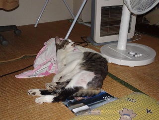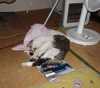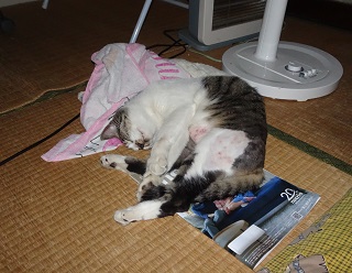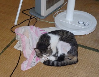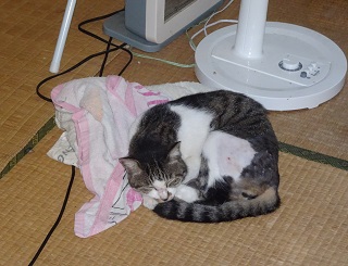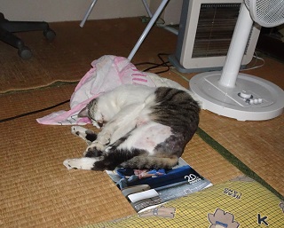 15.鼻キズ子のニケちゃんもエアコンのある部屋で熟睡したいのかもしれない。