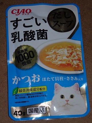 a13.かつお・ホタテ貝柱そして乳酸菌1000億個。ニケちゃんは金のだし・乳酸菌がないと食べようとしません。