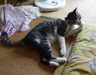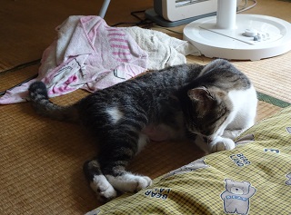 41.パパがニケちゃんの為に六畳間を与えたのだから室内で熟睡してください。