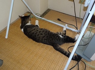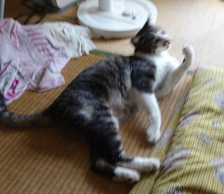 25.ニケちゃん。頭に手拭をまとい二足歩行してくれ。江戸時代の「化け猫」の二倍の体長があるから迫力があるはずだ。