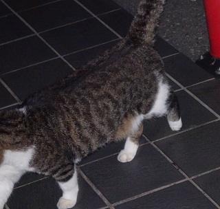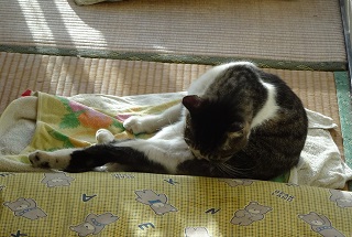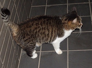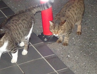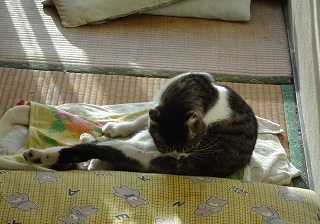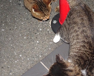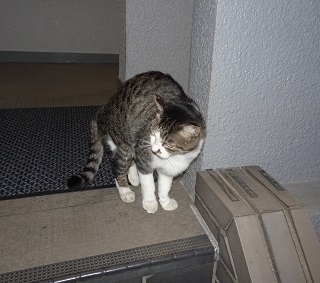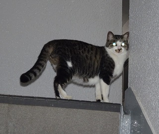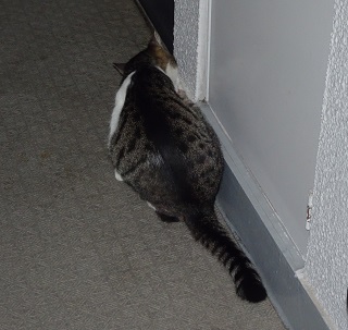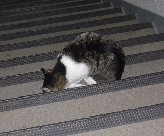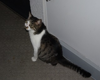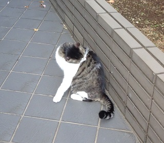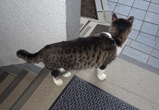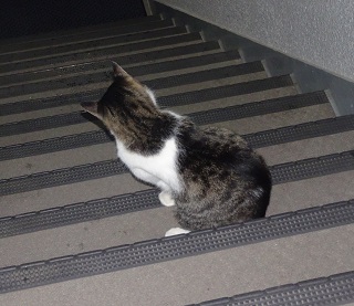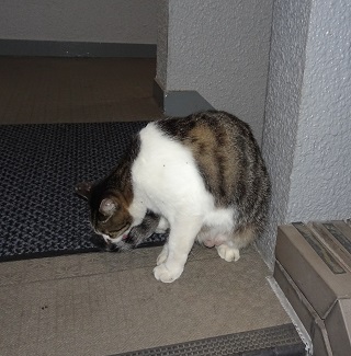 37.キリスト教会のエアコンの室外機の前の小姫ちゃん。