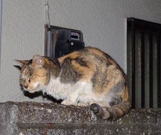 1.新年早々の未亡人の三毛珍獣ちゃん。年を取って毛並みが悪くなりました。塀の上と自動車の下にいる事が多く杏子(あんず)ちゃんの先生なのでしょうか?。