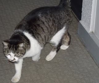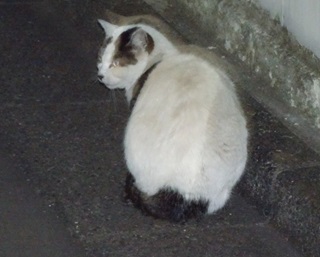 4.こちらが鼻キズ子のニケちゃんです。肩幅が広くお尻が小さい体型です。普通の日本猫は肩からお尻までほぼ平行です。