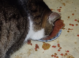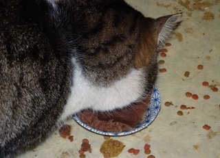 10.鼻キズ子のニケちゃんは食べ方が雑でご飯を食い散らかします。