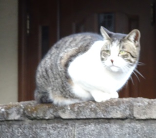 13.三毛珍獣ちゃんと同じ古びた塀の上にアンジェリーヌちゃんがいます。