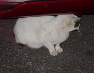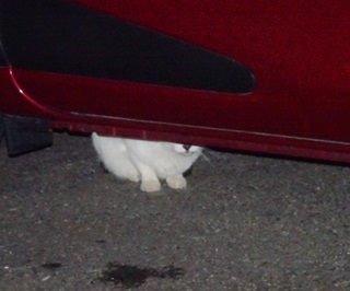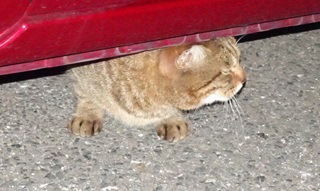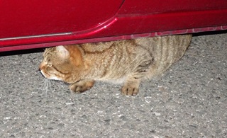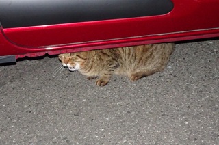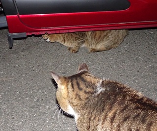 22.クリスティーヌちゃんは杏子(あんず)ちゃんに自動車の下から出る様に言いました。しかし小柄な雌猫にとって自動車の下が安住の地なのです。