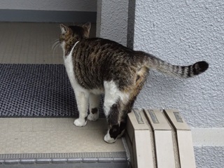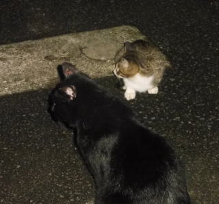 24.パパは「周りの雌猫に迷惑がかからない様に一緒に家に入ろう」と言いました。しかし鼻キズ子のニケちゃんは他の雌猫がいたのか襲いに行きました。立派な門番と言うしかないのでしょうか?。
