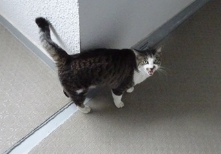 23.一瞬の睨み合いをして唸り声をあげました。しかし負け猫の様に戦意喪失です。アンジェリーヌちゃんや静ちゃんでは鼻キズ子のニケちゃんに敵対する事すら出来ないのか?。