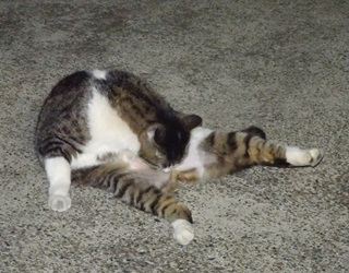 この画像は脇役144の8です。晩年のクリスティーヌちゃんです。プチ豪邸の奥様によると「3~4月のある日クリスティーヌちゃんは庭で倒れていてそのまま一週間ほど眠る様に死んだ」そうです。病死と言うより突然死みたいな感じでした。クリスティーヌちゃんは野良として生まれて成猫してからプチ豪邸に5~6年通い猫する様になったそうです。元々野良だったのでナデナデしたりダッコができず室内に入る事も無かったのでペット・ショップで買った様な飼い猫にはなれませんでした。しかし長い付き合いなので落胆したそうです。パパの方が8~9年間の付き合いだったのでもっと落胆しています。