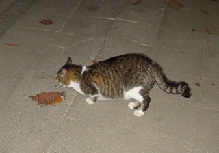 21.夜な夜な公園に現れて固形(ご飯)をくれる人間がいたんだね。一箱くらいの量があるのか?。