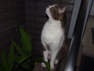 39.二階を見上げる鼻キズ子のニケちゃん。