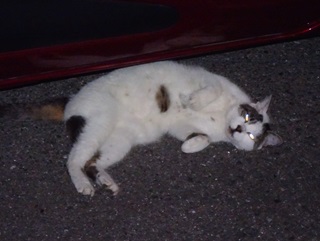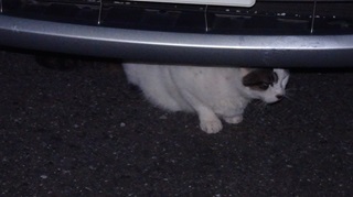 40.自動車の下でゴロニャンをはじめ様とする小姫ちゃん。