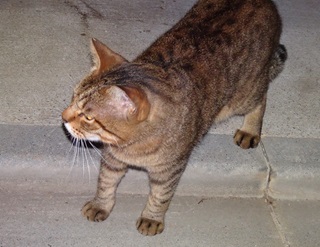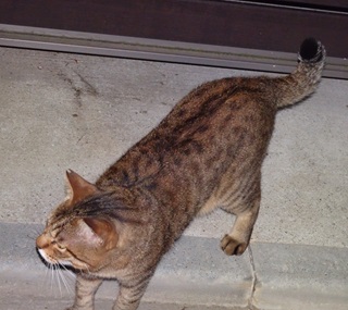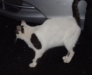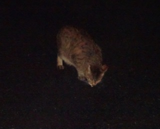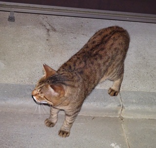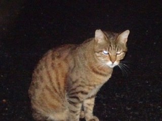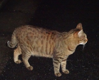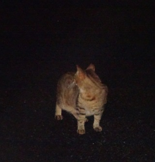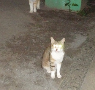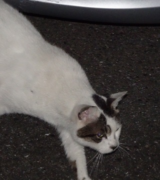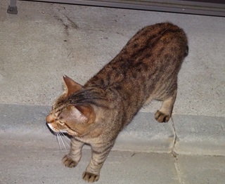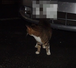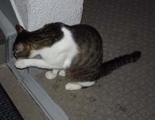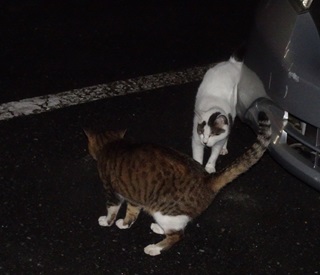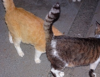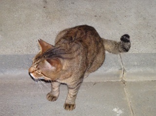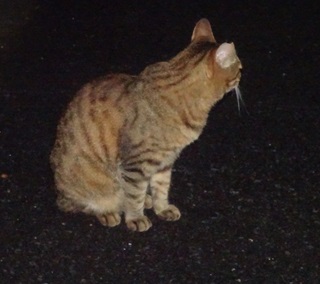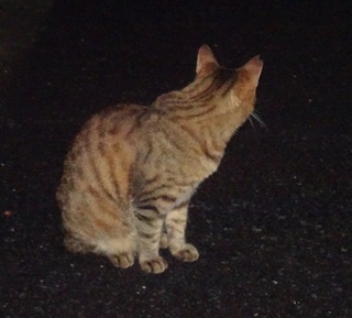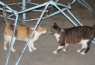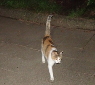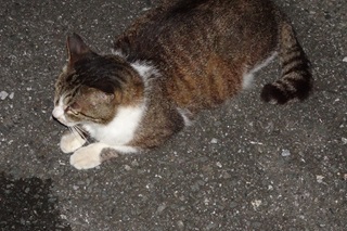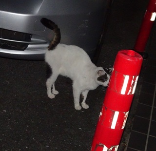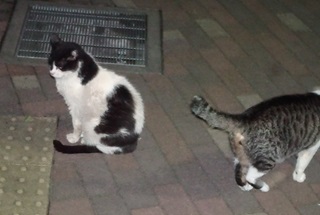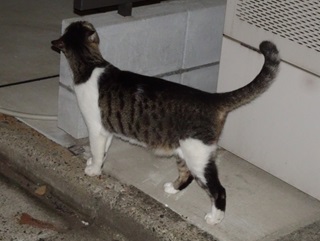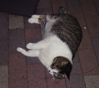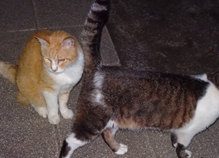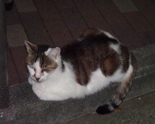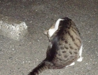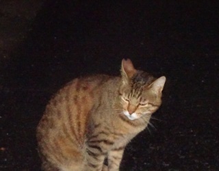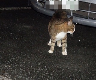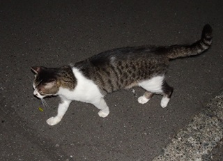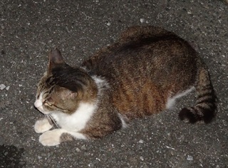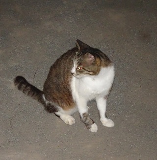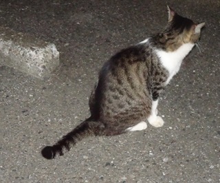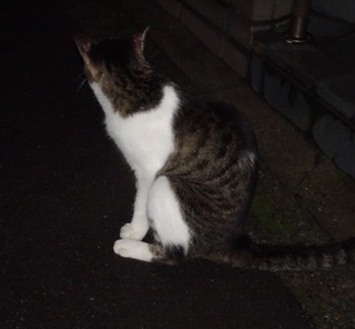 40.地域のボス猫の茶子ちゃんと挨拶をするクリスチャン(キリスト教徒)。