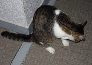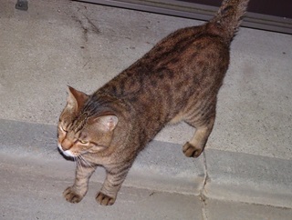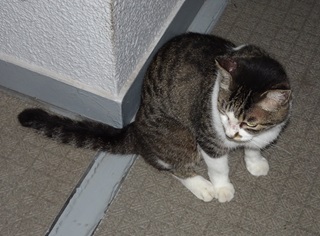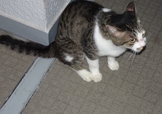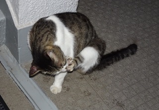 39.クリスチャン(キリスト教徒)の右足の白毛はアメリカン・ショートヘア種のクラシック・タビーのうねりの変形です。