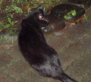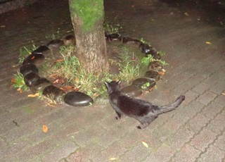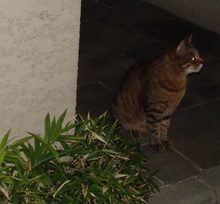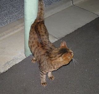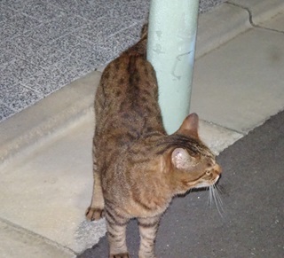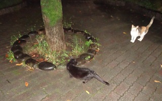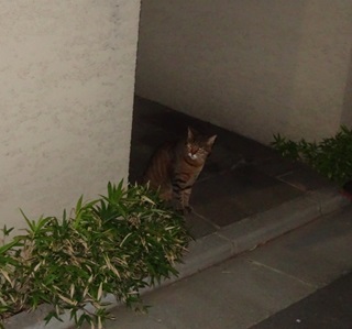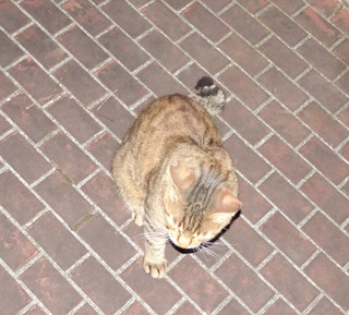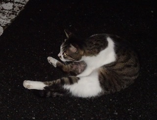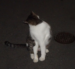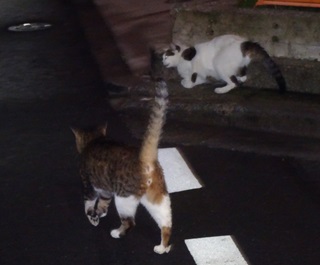 この画像は脇役96の49です。鼻キズ子のニケちゃんは門番の職務を茶白の雄猫とデートしてサボっていました。