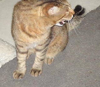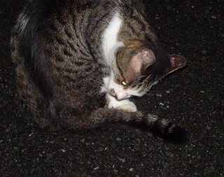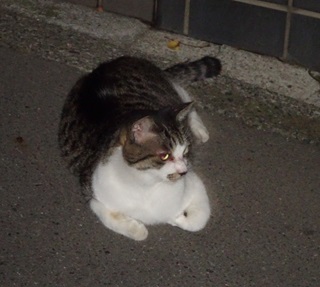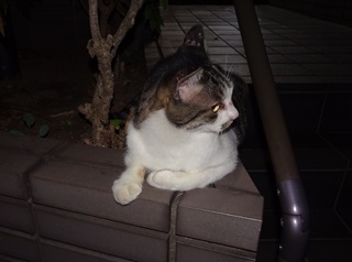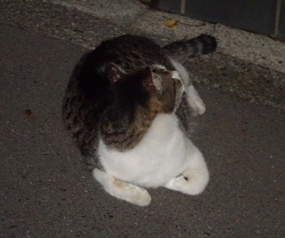 この画像は脇役96の43です。鼻キズ子のニケちゃんが髪の毛の引っ張り合いの略奪愛で勝ち取った茶白の雄猫です。