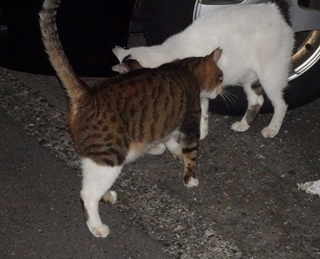 40.すると同時に秘密の隠れ家の植木や垣根の下から生後2ヶ月位の黒白の子猫が杏子(あんず)ちゃんの様に泣き喚く女児をはじめました。