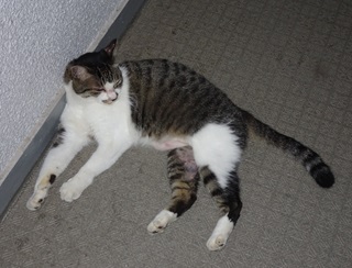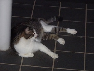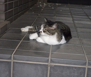 35.鼻キズ子のニケちゃんもタイルの上でダウンしていますね。