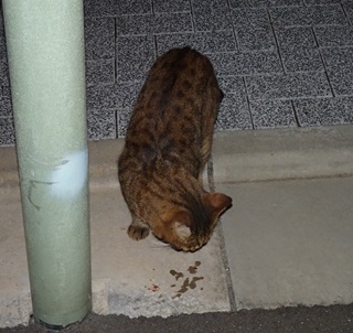 41.秘密の隠れ家には多くの植え込みや垣根があり数匹の雌猫が子育てをしていました。