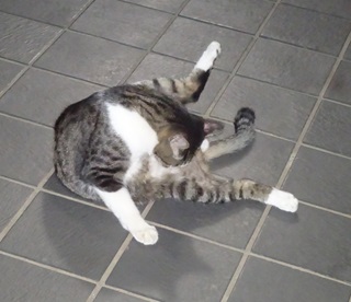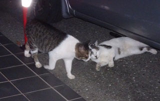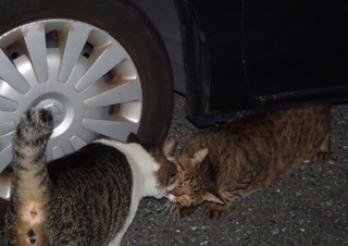 25.今度は自動車の下でジャレあっています。