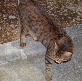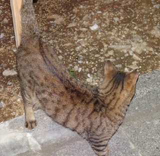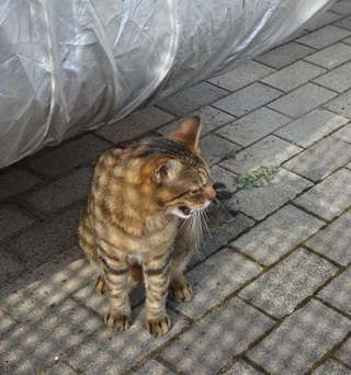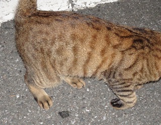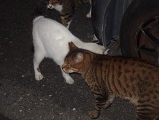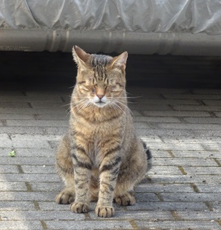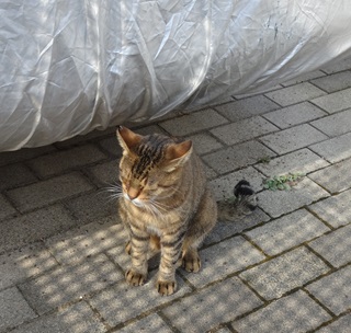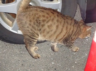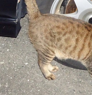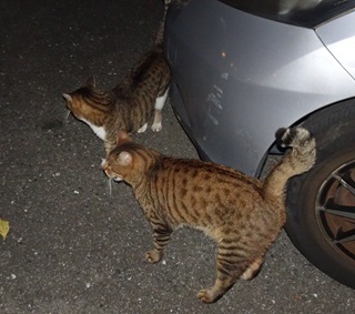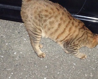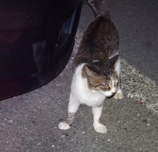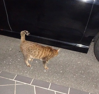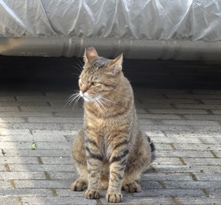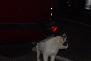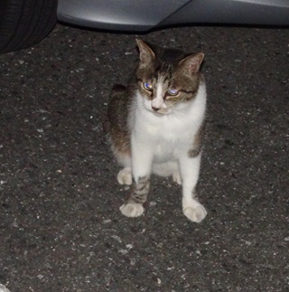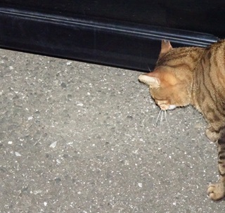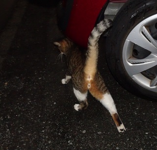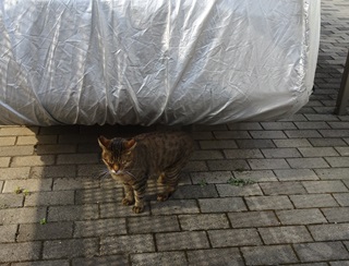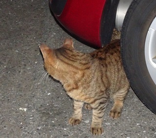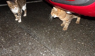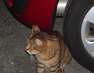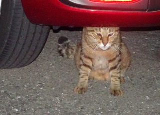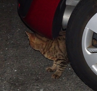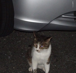 3.杏子(あんず)ちんは鼻キズ子のニケちゃんに襲われない様に自動車の下にいます。
