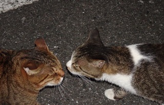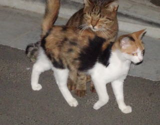 40.杏子(あんず)ちゃんとは顔立ち・性格そして鳴き声も違う黒白の子猫。杏子(あんず)ちゃんとはどんな関係なのですか?。生後4ヶ月位になって杏子(あんず)ちゃんも保母の役目がすんだのでしょうか?。因みに杏子(あんず)ちゃんと黒白の子猫の間に親子の様な親密さはありません。人間に子育てされた杏子(あんず)ちゃんに取って保母の役目も荷が重たかったかもしれません。