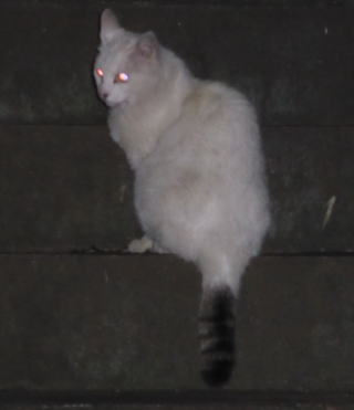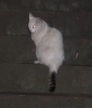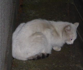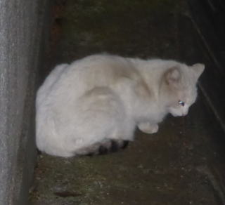 雪ちゃんはどう若く見ても六歳以上の高齢猫。同年代の猫が一匹また一匹と消えていく中で未だに現役です。尾だけサバ虎柄の白猫なので雪ちゃんと命名。日本猫なので体長は普通ですが太っています。