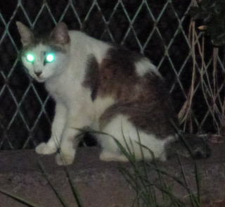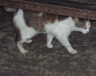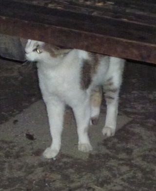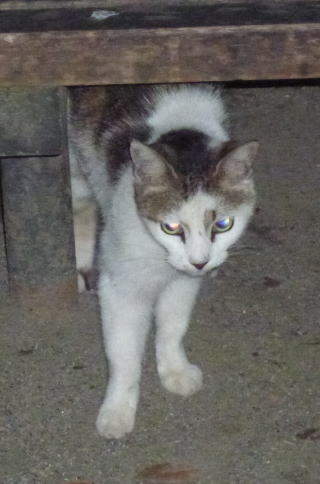 9.ベンチの下からのぞみこむ顔が可愛いね。グリーンアイだ。