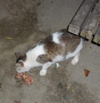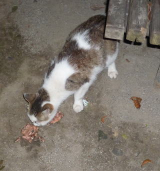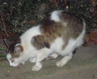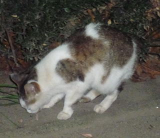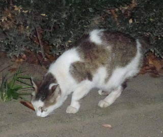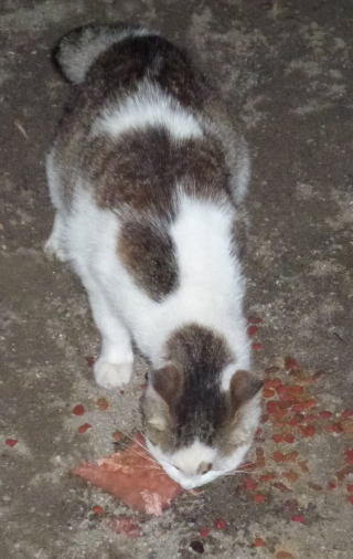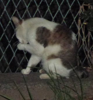 関東に何処にでもいる日本猫のユマちゃん。ペットショップにはこんな雑種のネコちゃんは売っていないと思う。高台から見下ろしながら顔を洗う姿は良いね。