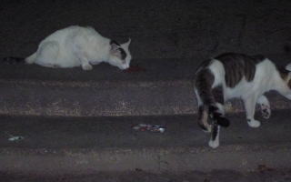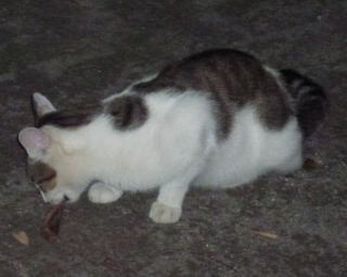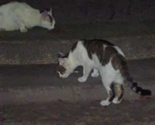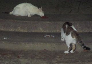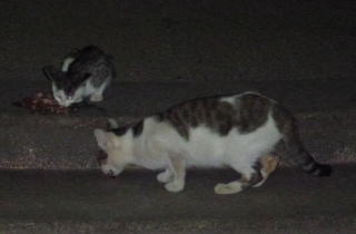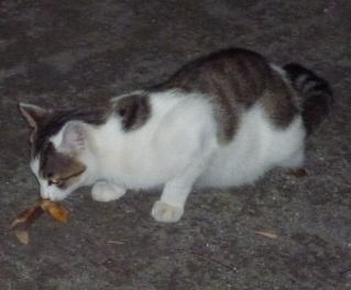 1.フミちゃんの四匹の子猫に用意した焼き鰹が横取りされちゃった。
