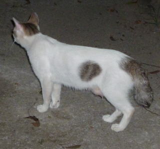 子猫より少し大きいだけの小さな日本猫。スマートな体形で白い百合の花みたい。天使ガブリエルが手にした白百合の花って感じ。まだ若いのに母親です。